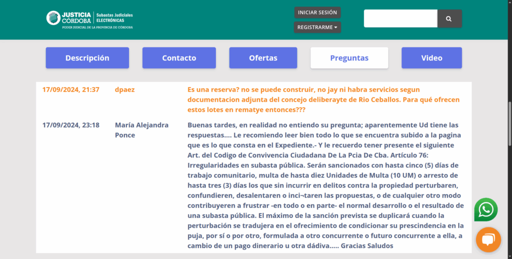 El Juzgado, la Municipalidad, Catastro y Medio Ambiente sabían y expusieron en la subasta que los terrenos estaban dentro de una reserva natural. Ninguna de esas instituciones advirtió la restricción de construcción ni frenó la subasta. El silencio fue institucional.